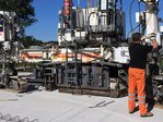 The new concrete slab, manufactured using slipform construction, extends over roughly 62,500 m². It is 12 to 15 m wide and 26 cm thick. Artificial turf was used to produce its surface structure: a total of around 20,000 running metres of joints were cut and sealed using a cold-sealing compound.